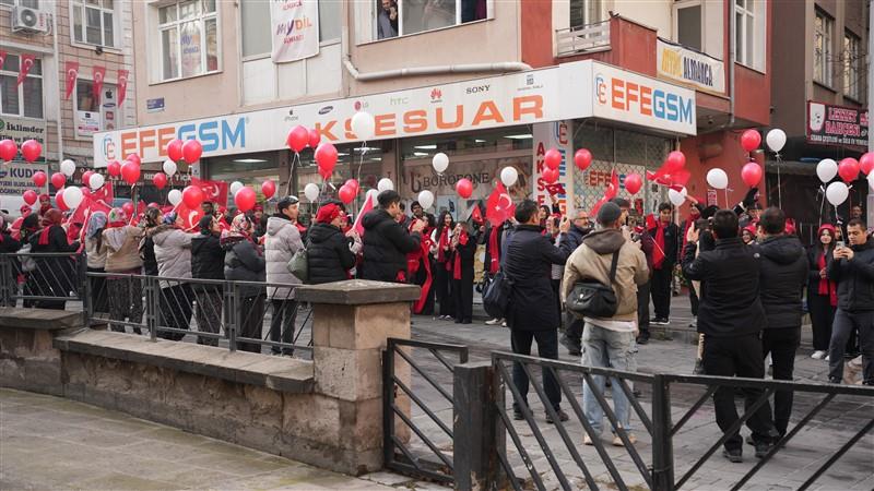 Gazi Mustafa Kemal Atatürk'ün Kayseri'ye gelişinin 106. yıl dönümü münasebetiyle Hidayet Aydoğan Sosyal Bilimler Lisesi öğrencileri tarafından hazırlanan 106 balon gökyüzüne bırakıldı.