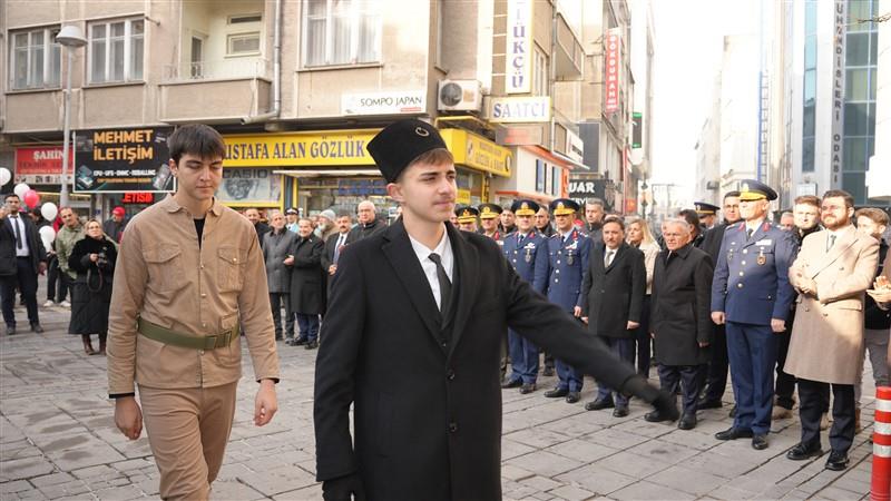 Temsili olarak bir öğrenci, Gazi Mustafa Kemal Atatürk’ün Kayseri’ye gelişini canlandırdı.